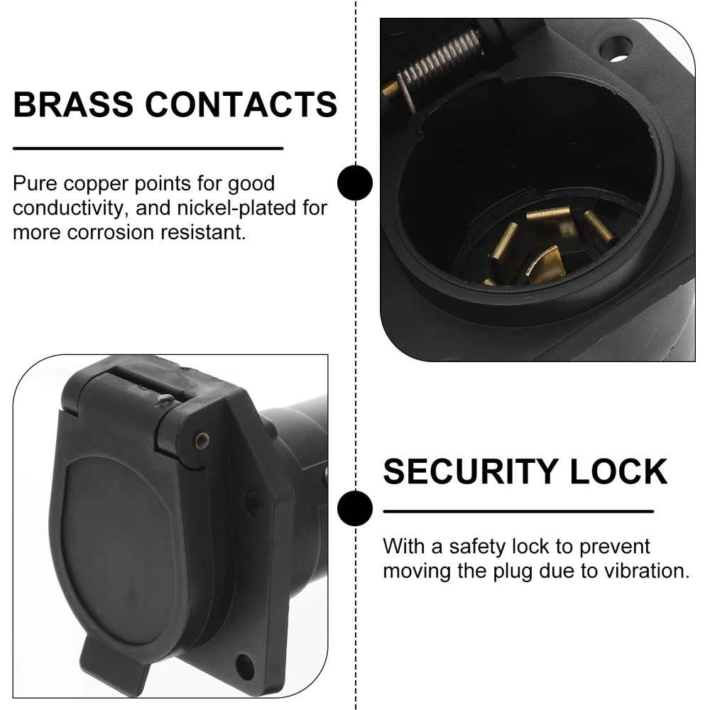 7-pin anhänger adapter verbindet die großen fahrzeug und die zusätzliche anhänger, und überträgt die elektronische signatur aus dem fahrzeug zu trailer. Messing kontakte zu verhindern korrosion. Nimmt standard 7-weg RV anhänger stecker. Akzeptiert breite palette von draht messgeräte.